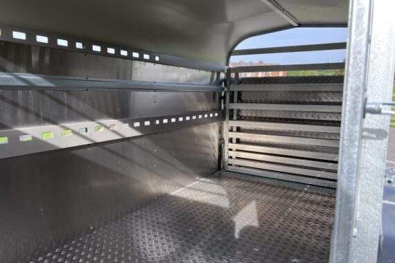 All models have a hot dipped galvanised chassis and are panelled with 2mm toughened alloy sides and a plastic coated galvanised steel roof. The floor is 18mm Phenol coated panels covered with aluminium tread-plate and a folded tread-plate ramp door.